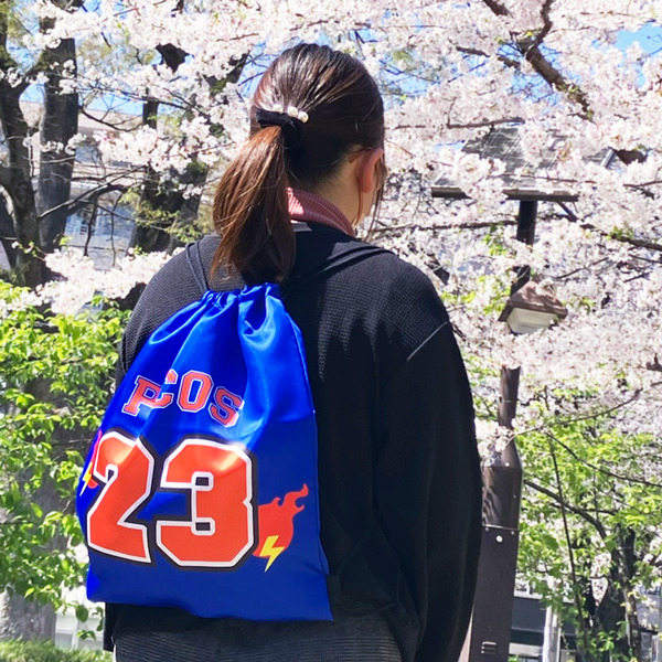 大きな絵柄を付けられる面積もありますし、ナップサックの両面にプリントできるのでリバーシブルな使い方も!